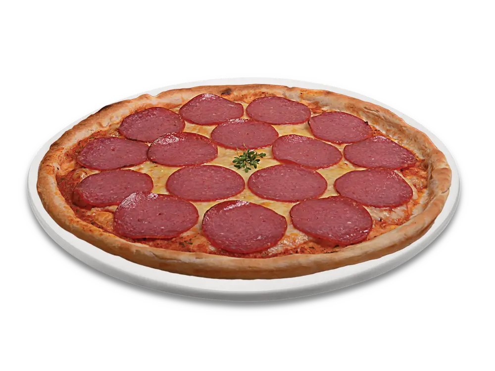 Frischer Teig, Tomatensauce, echter Käse, Salami(Pute)